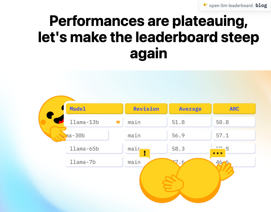 We started this week's podcast by commenting on Hugging Face's changes to their Open LLM Leaderboard, which posted more challenging benchmarks and scoring and showed much more exciting results.
