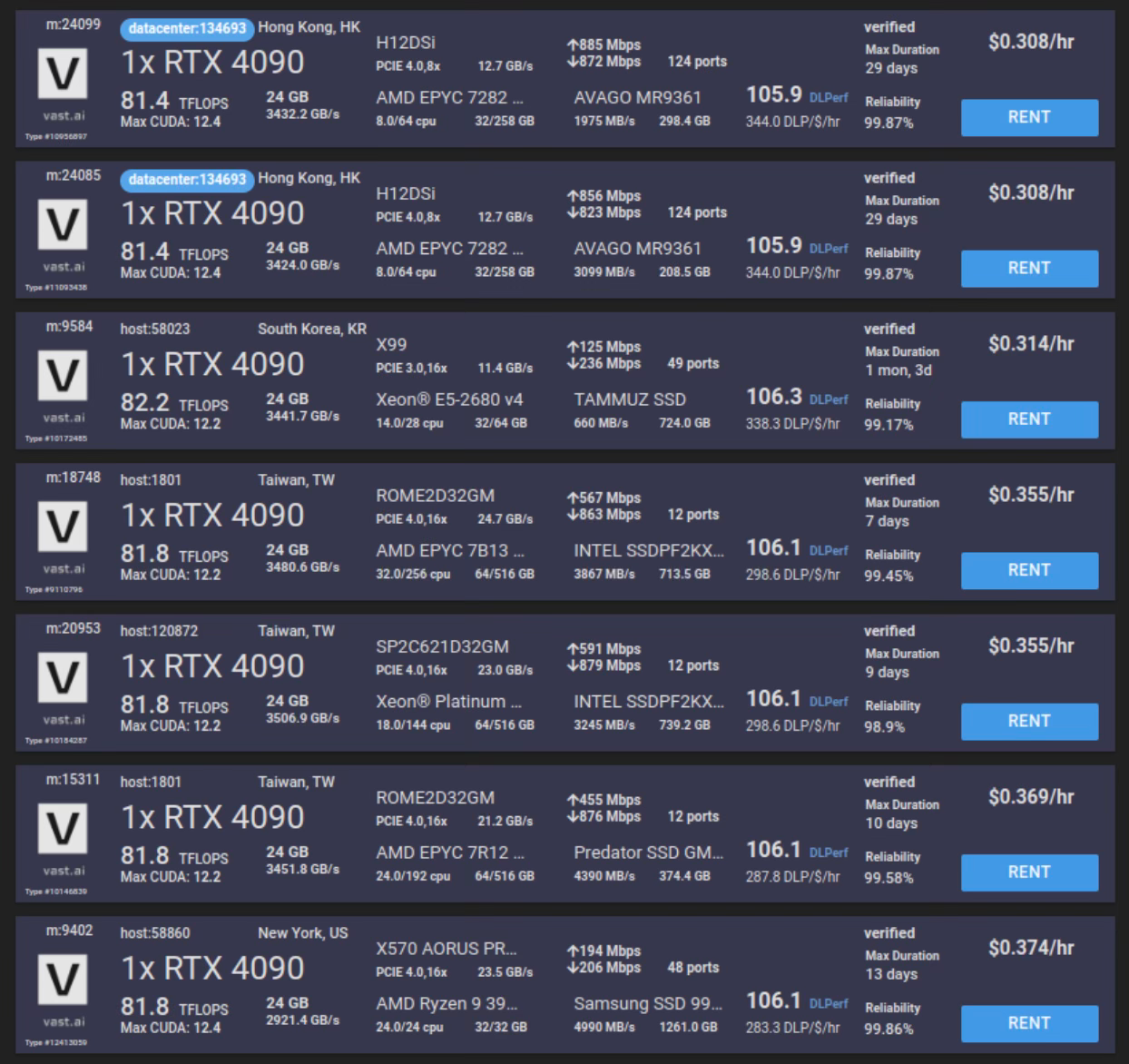 When you see a page like that with a huge amount of numbers, it's easy to get overwhelmed and fixate only on words like **RTX 4090** and **$0.35/hr**. But there is more to it.
